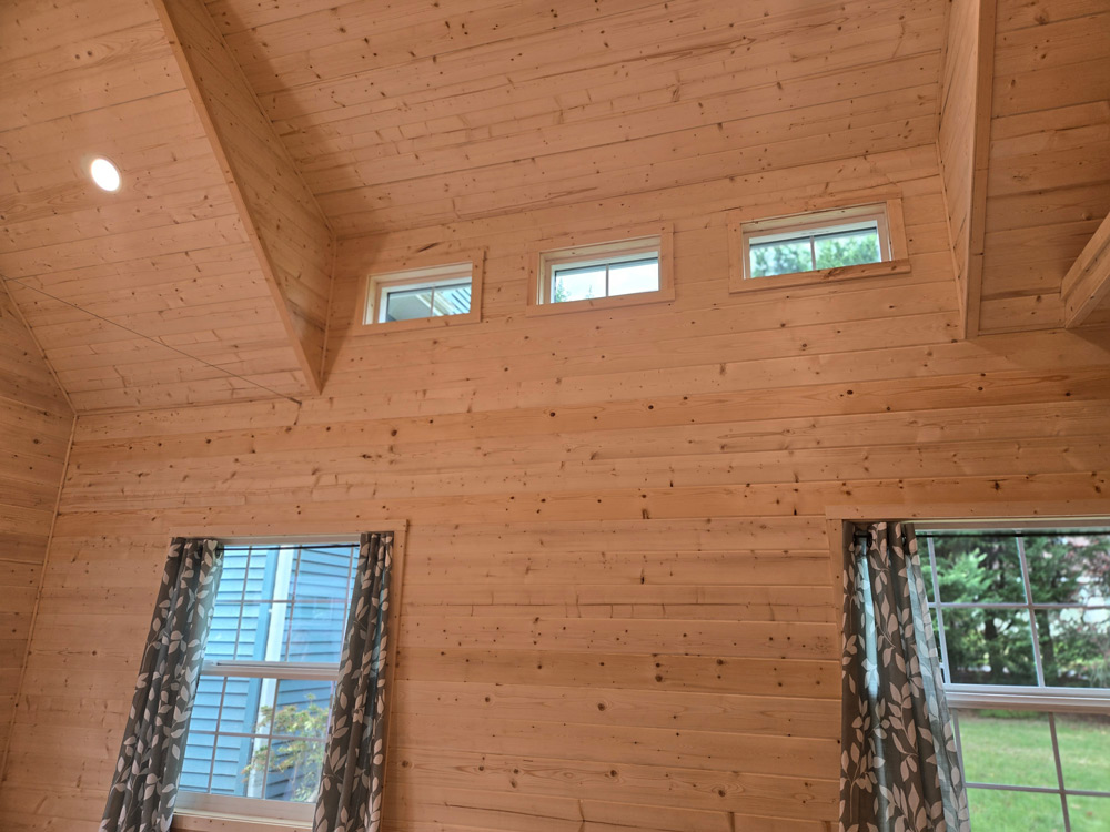 2-3W X 3H Slider Windows w/ Grids (white frames, 2 each on left and right gabled walls)