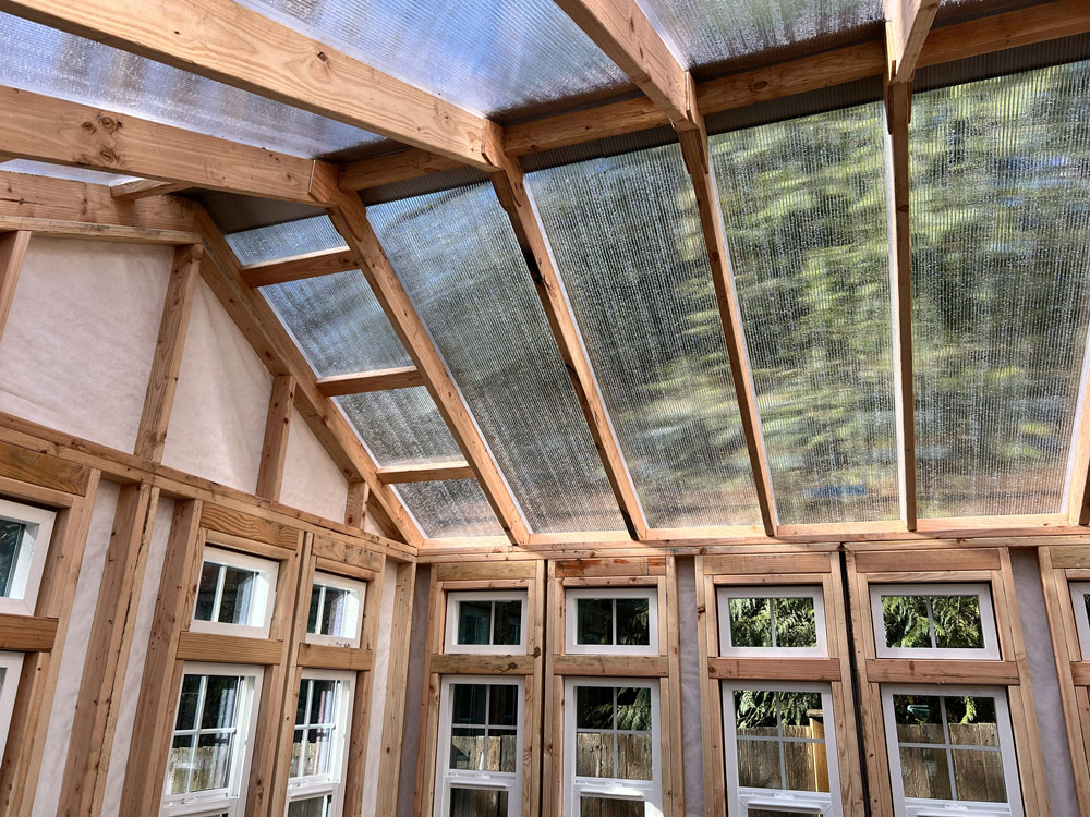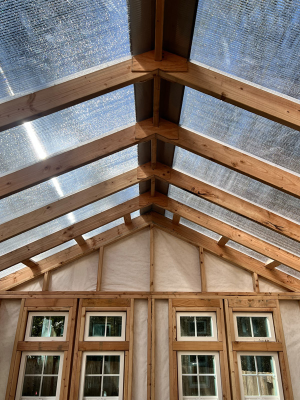 Natural Pine Tongue and Groove (Ceiling, Window Boxes, and Baseboards).